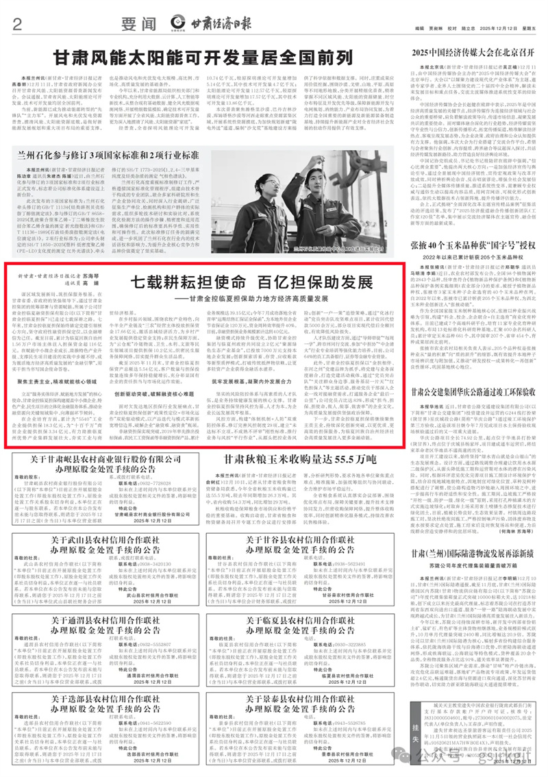 (新甘肃·甘肃经济日报记者 苏海琴 通讯员 高婧)谋区域发展新局,筑担保服务根基。在甘肃省委、省政府的坚强领导下,通过甘肃金控集团的统筹部署与资源赋能,所属子公司甘肃金控临夏融资担保有限公司(以下简称“甘肃金控临夏担保”)已走过七载深耕之路。七年来,甘肃金控临夏担保始终锚定党建引领核心方向,坚守政府性融资担保定位,以金融增信为己任。截至目前,累计为临夏回族自治州1.56万户市场主体注入担保资金超116亿元。在赋能中小微企业成长、助推特色产业升级、支撑民生项目建设的实践中步履不停,成为激活地方经济高质量发展的“金融引擎”,用实干担当书写国企使命答卷。