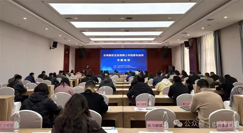 为加快推动兰州新区企业挂牌上市步伐,提升企业运用资本市场的能力,近日,企业挂牌上市和资本运作专题培训在兰州新区成功举办,本次培训由新区财政金融和国资局主办、新区企业服务中心与新区项目建设中心协办、西部绿色认证中心与甘肃股权交易中心承办。新区内重点培育企业、专精特新企业及规模以上企业共百余人代表参加培训。